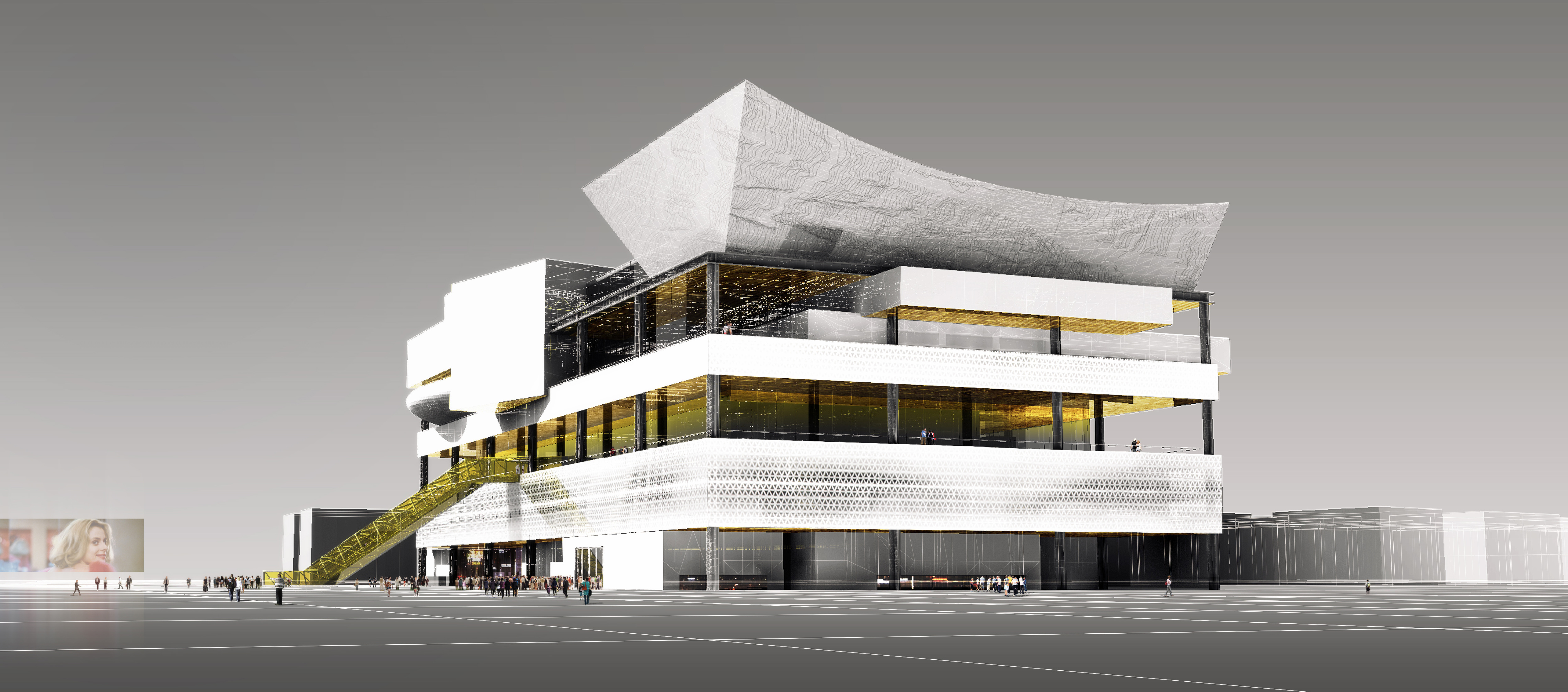 The 3rd shelve of the building establishes the main lobby or the grand hall of the library. Two monumental escalators detached from the building which take people from the landing strip, and bring them into the elevated grand hall. This provides a breathtaking and privileged 360º view of the city and park. The landing strip also becomes the main entrance plaza to the library and the main access to the park.