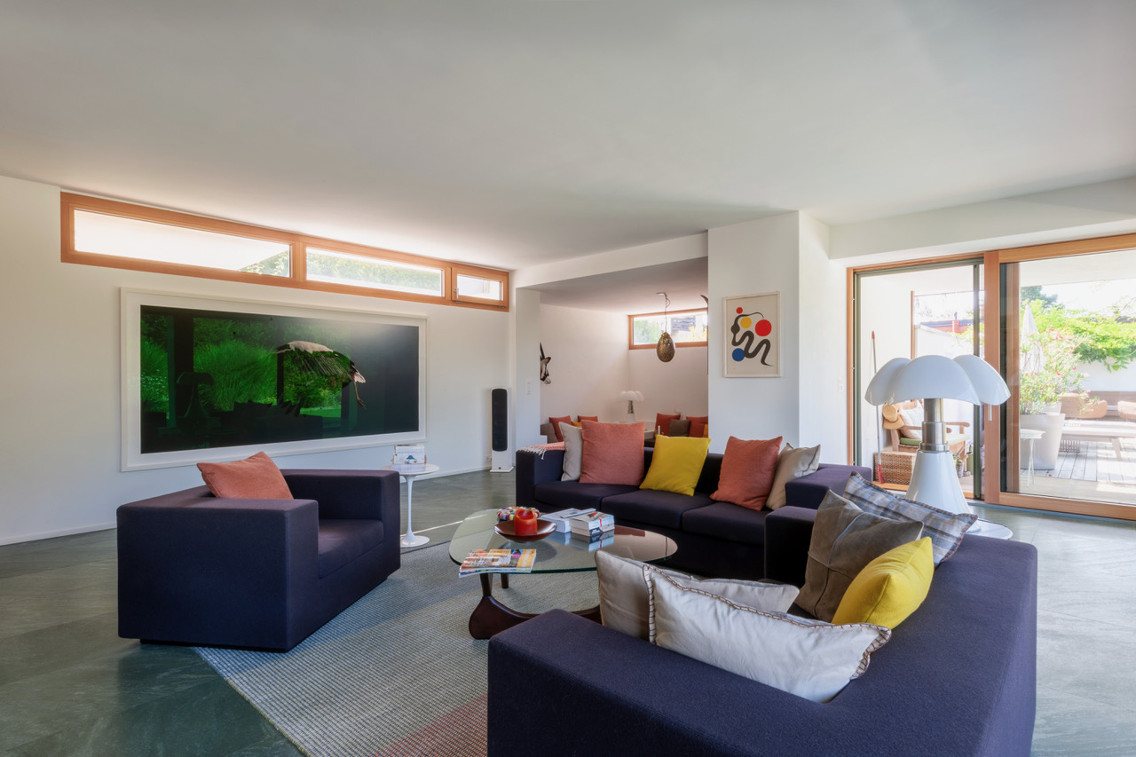 Comprehensive renovation and extension of an original mid-century building in the Zurich area. Adaptation of the static building structure to merge individual room units into a spacious living area on the ground floor. Opening of the main façade to the garden with floor-to-ceiling windows, repositioning of the kitchen and reorganisation of the bathrooms. Support of the central design elements such as the general cubic façade expression through an integrative extension. Retention of important details such as the wooden panelling and doors in knot-free spruce, the general entrance area and the addition of sensitively selected components such as natural wood windows and a coordinated colour concept.